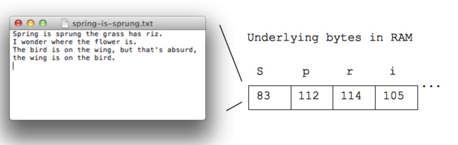 - ASCII is an encoding representing each typed character by a number