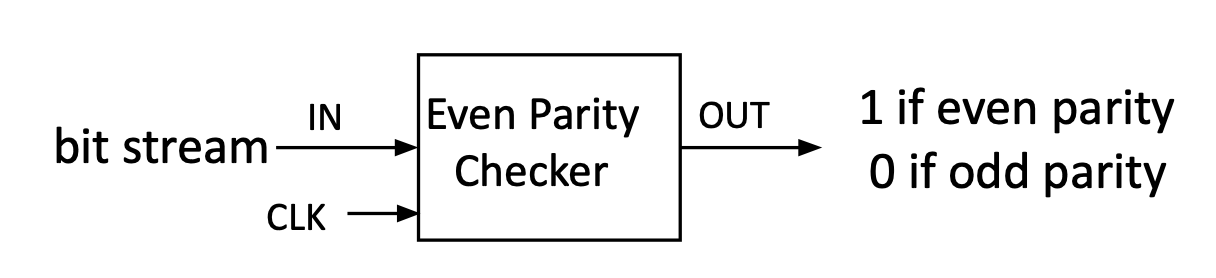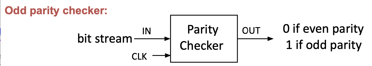 Parity checker counts the number of 1's in a bit-serial input stream.
