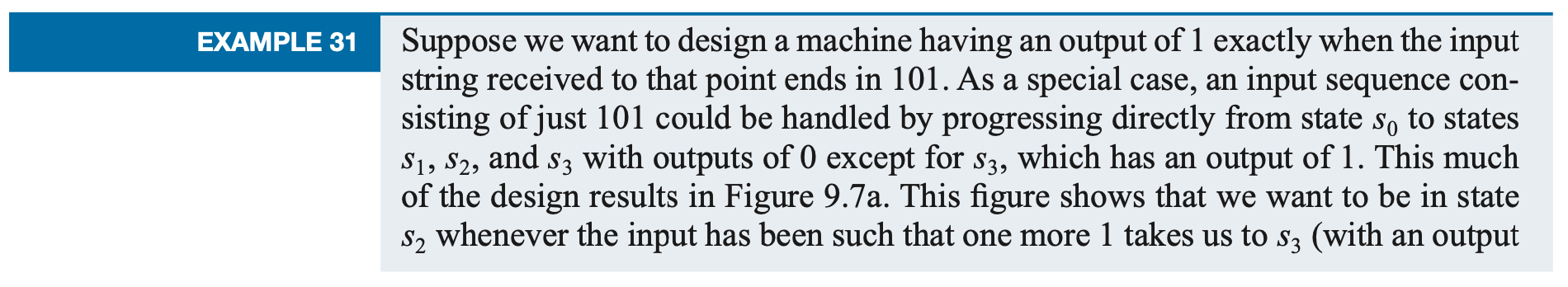 - Otherwise, the output is 0 (reject). (the pattern "101" has not been found at the end of the string)
